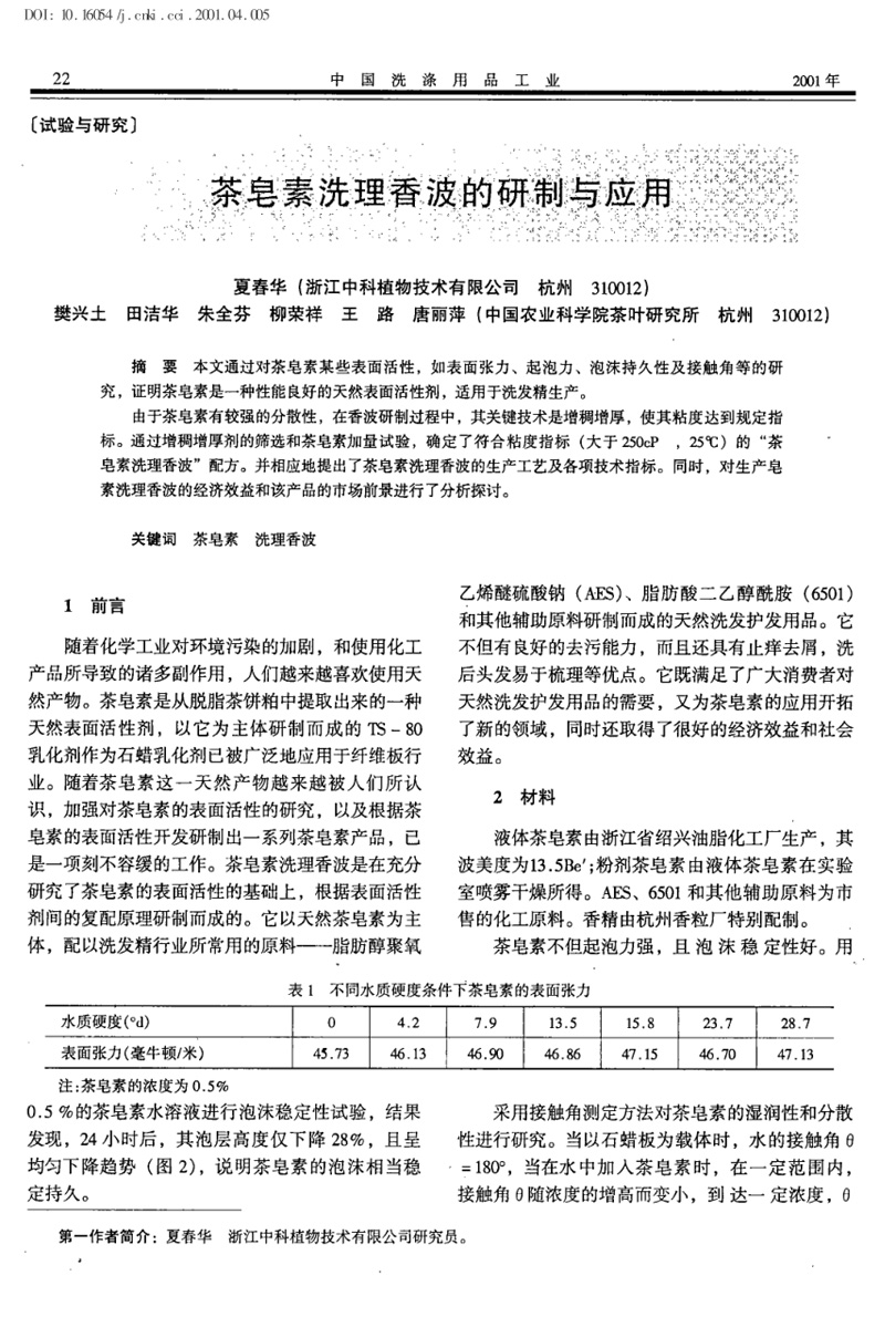 茶皂素洗理香波的研制與應用